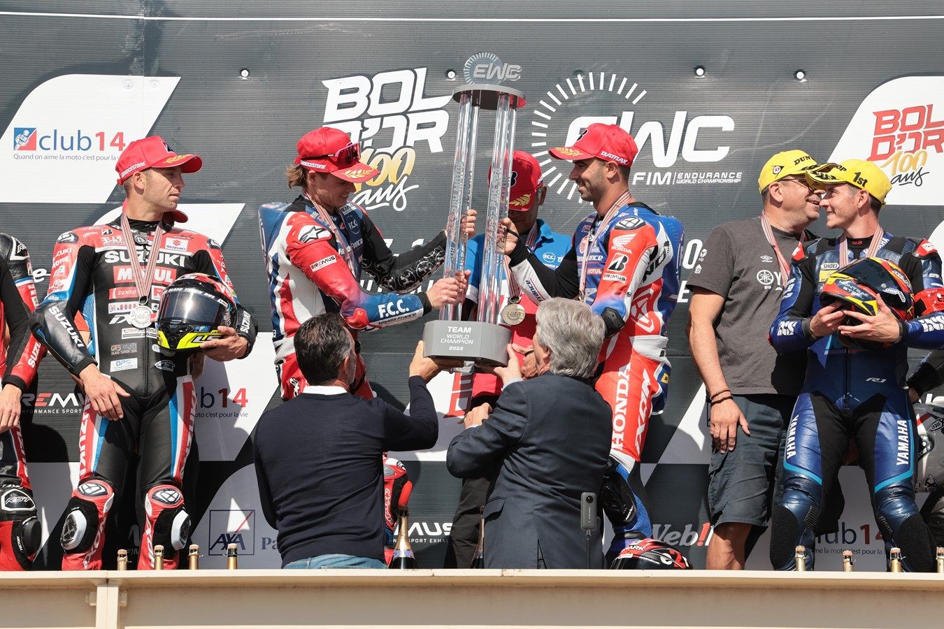 L’équipe officielle F.C.C. TSR Honda France devient championne du monde d’Endurance pour la deuxième fois de son histoire à l’issue de la finale de la saison FIM EWC 2022 qui se déroulait ce week-end sur le circuit Paul Ricard au Castellet (France). La Honda #5 termine 4e le Bol d’Or après une belle remontée.